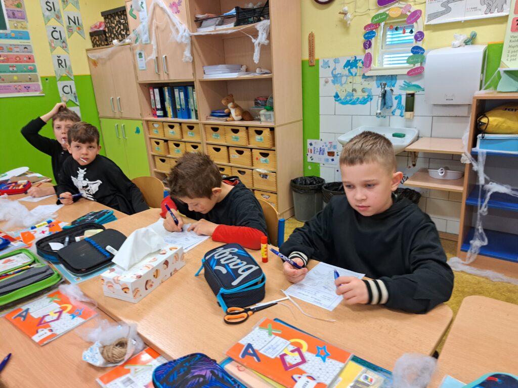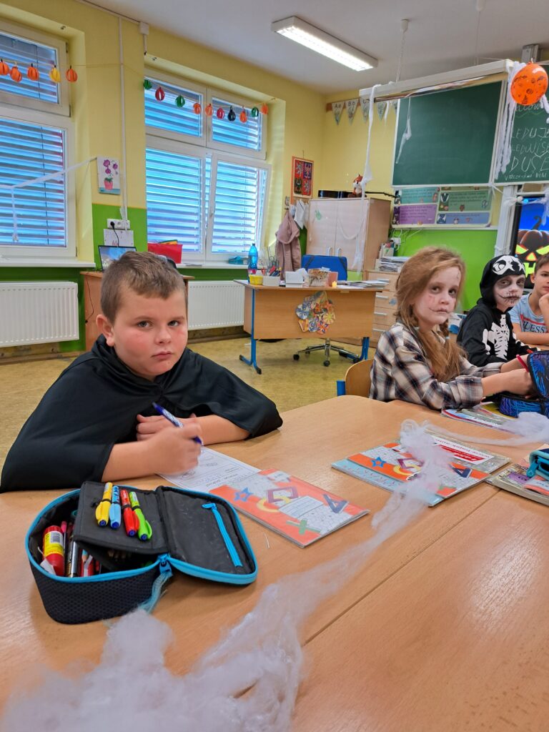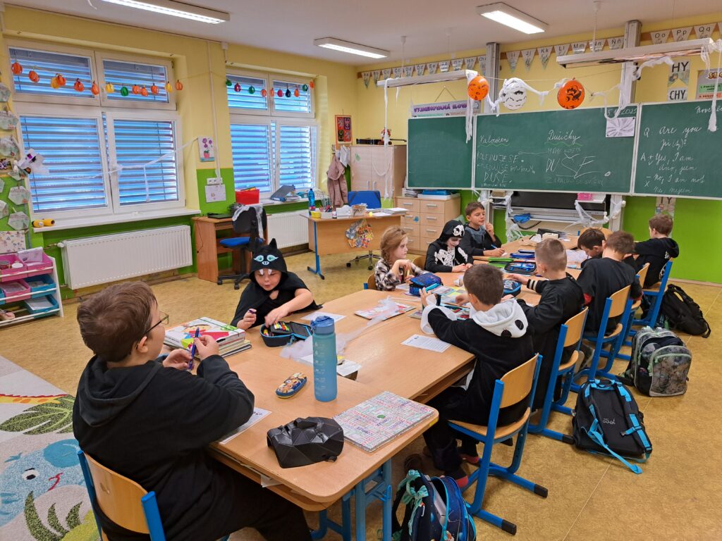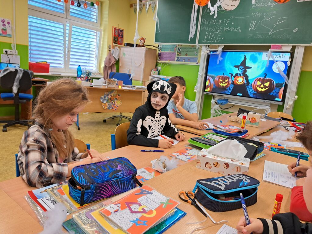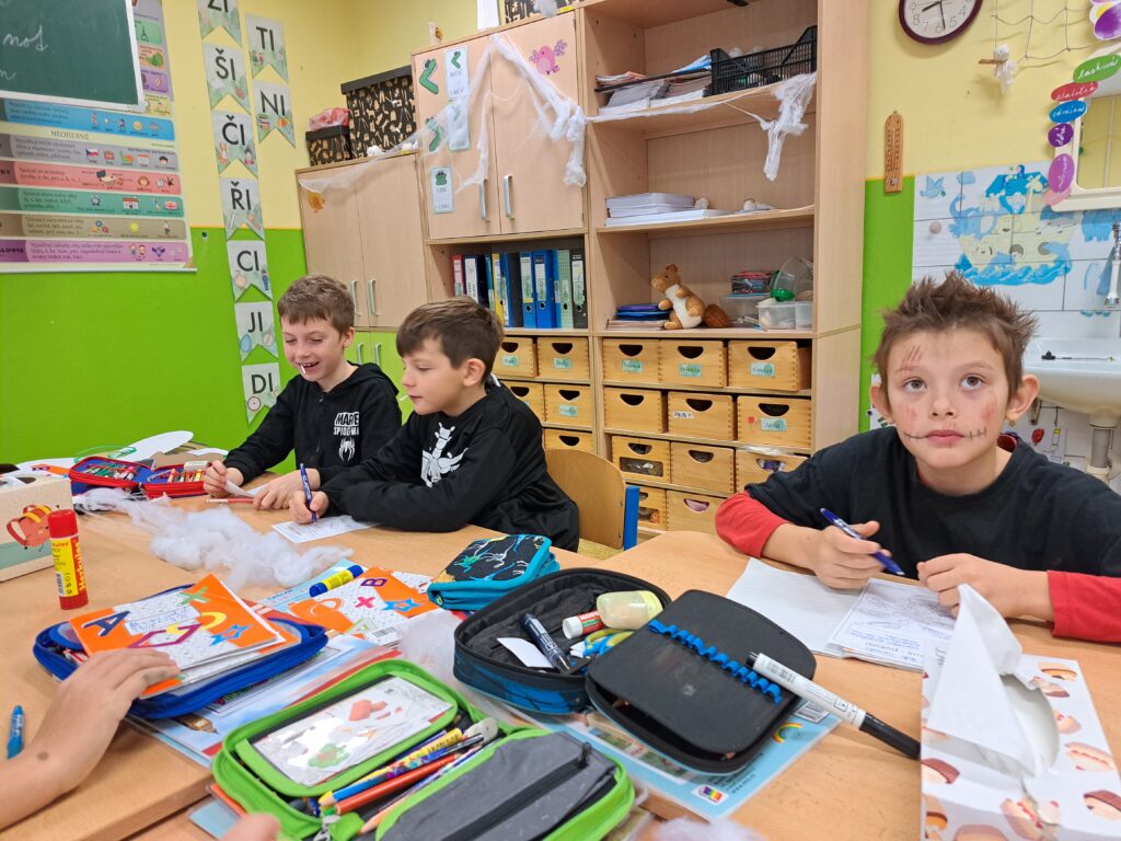Dnes proběhla tematická výuka ke Dni duchů. Děti plnily úkoly zaměřené na porozumění čtení, ve slohu jsme vymýšleli strašidelné příběhy a recepty na lektvary. V matematice jsme potrápili naše hlavičky při matematických rébusech a nechyběla ani strašidelná přehlídka a diskotéka. Děkuji rodičům za spolupráci při tvorbě kostýmů i dobrot.