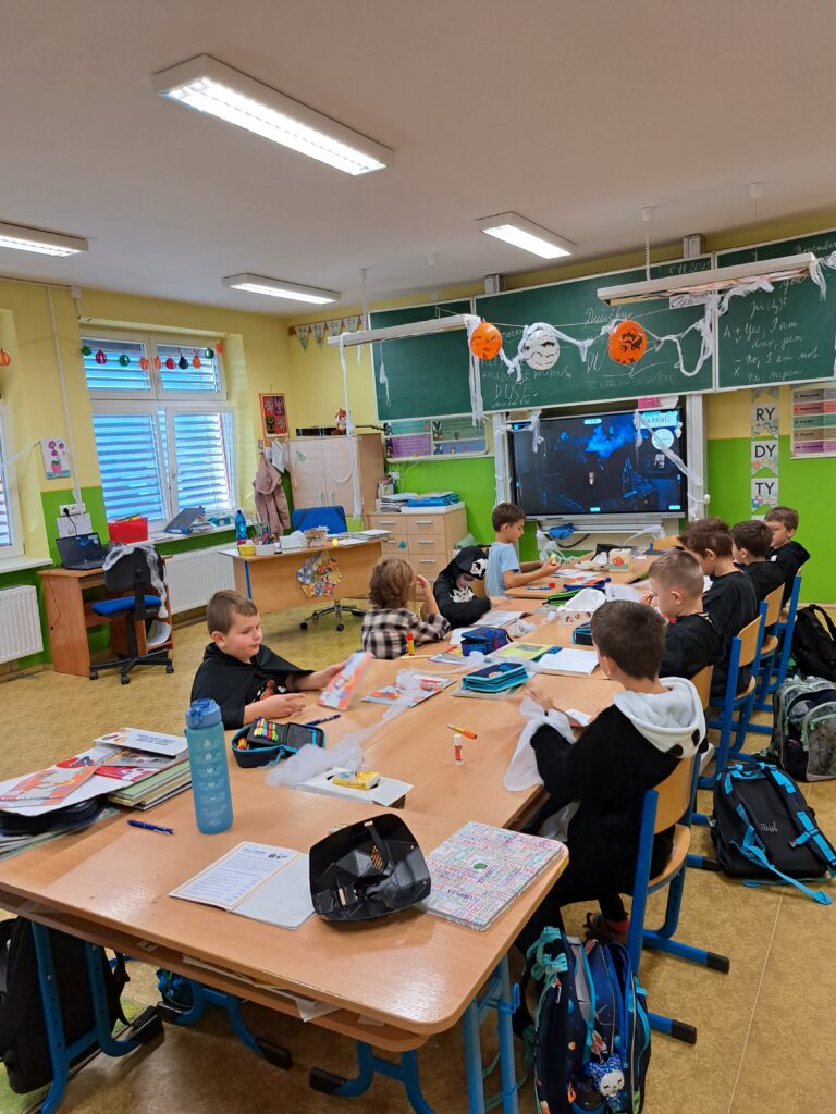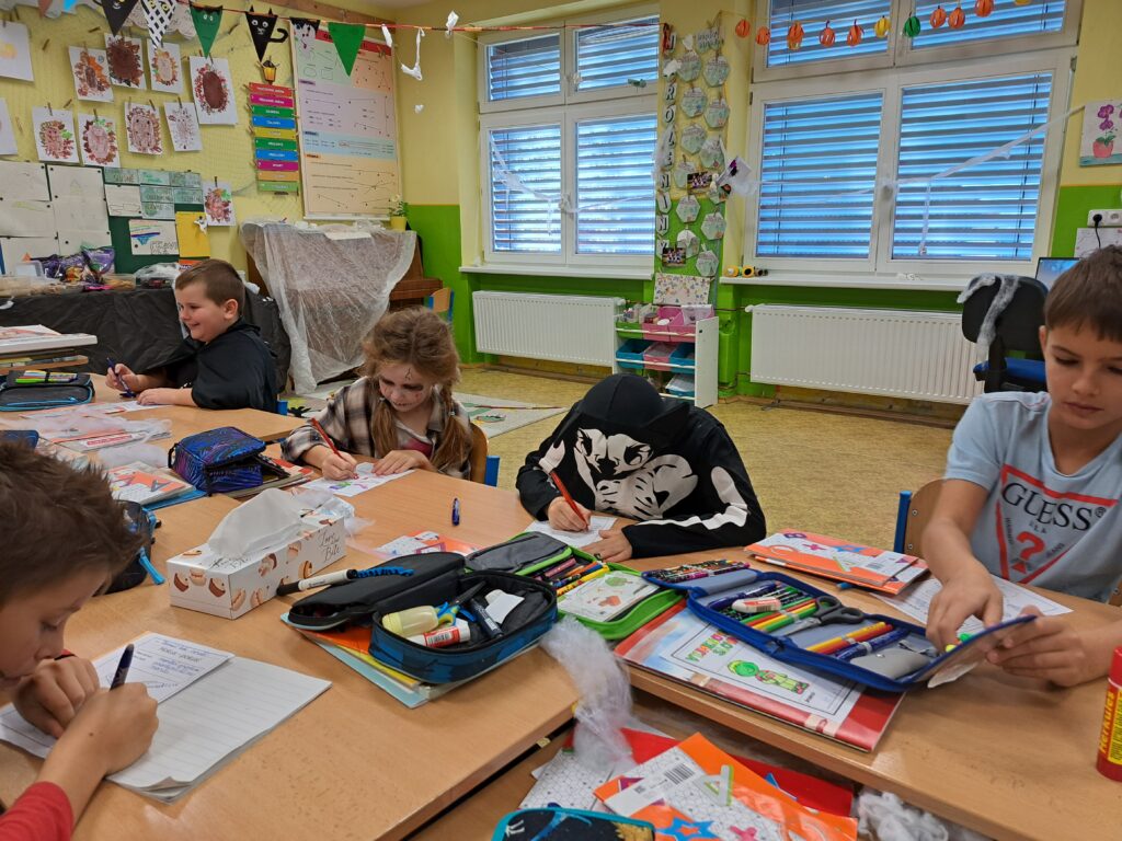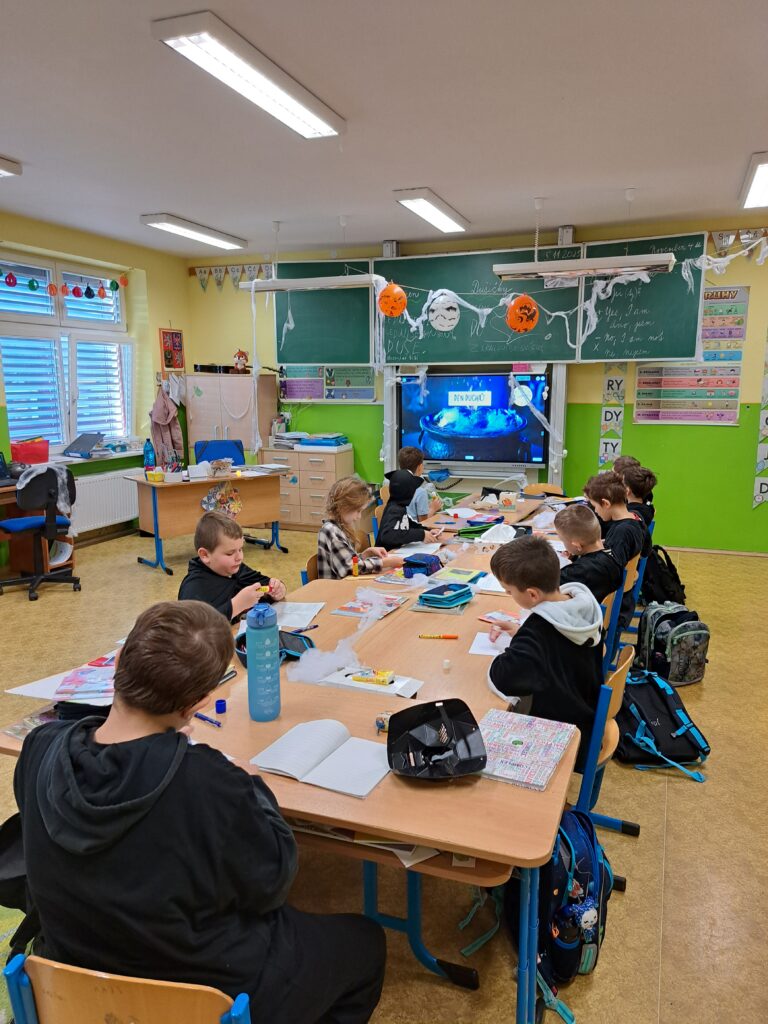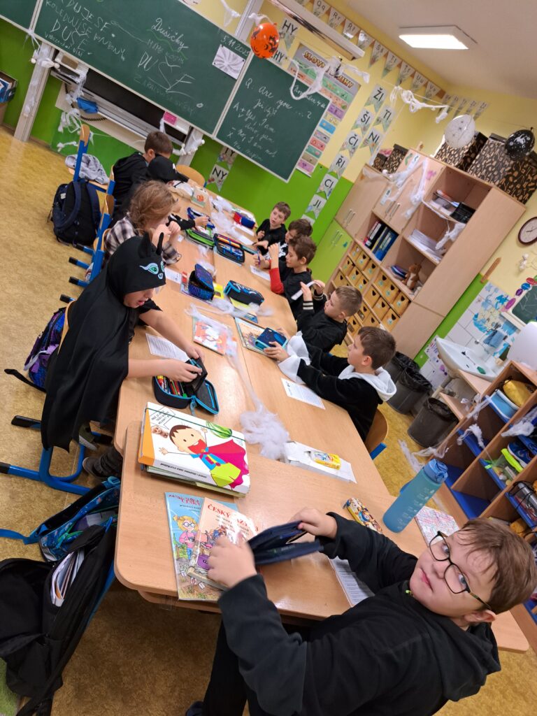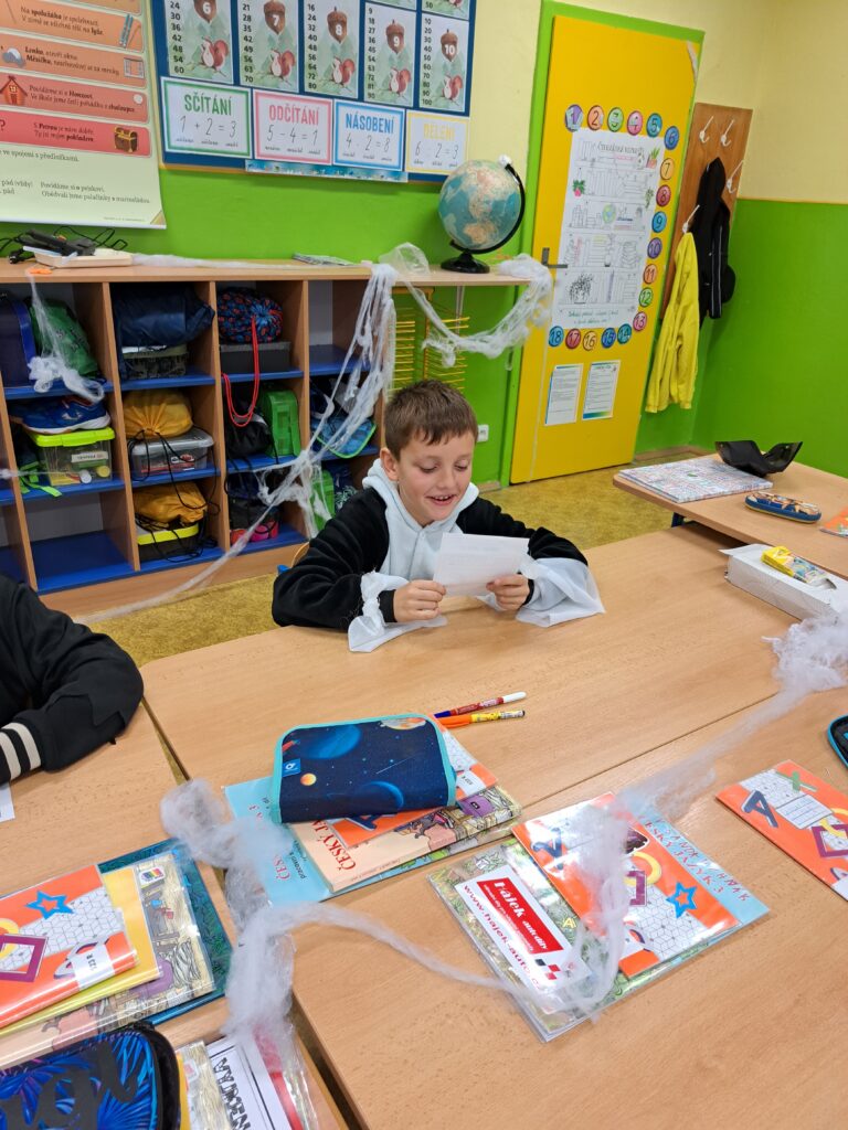 Dnes proběhla tematická výuka ke Dni duchů. Děti plnily úkoly zaměřené na porozumění čtení, ve slohu jsme vymýšleli strašidelné příběhy a recepty na lektvary. V matematice jsme potrápili naše hlavičky při matematických rébusech a nechyběla ani strašidelná přehlídka a diskotéka. Děkuji rodičům za spolupráci při tvorbě kostýmů i dobrot.