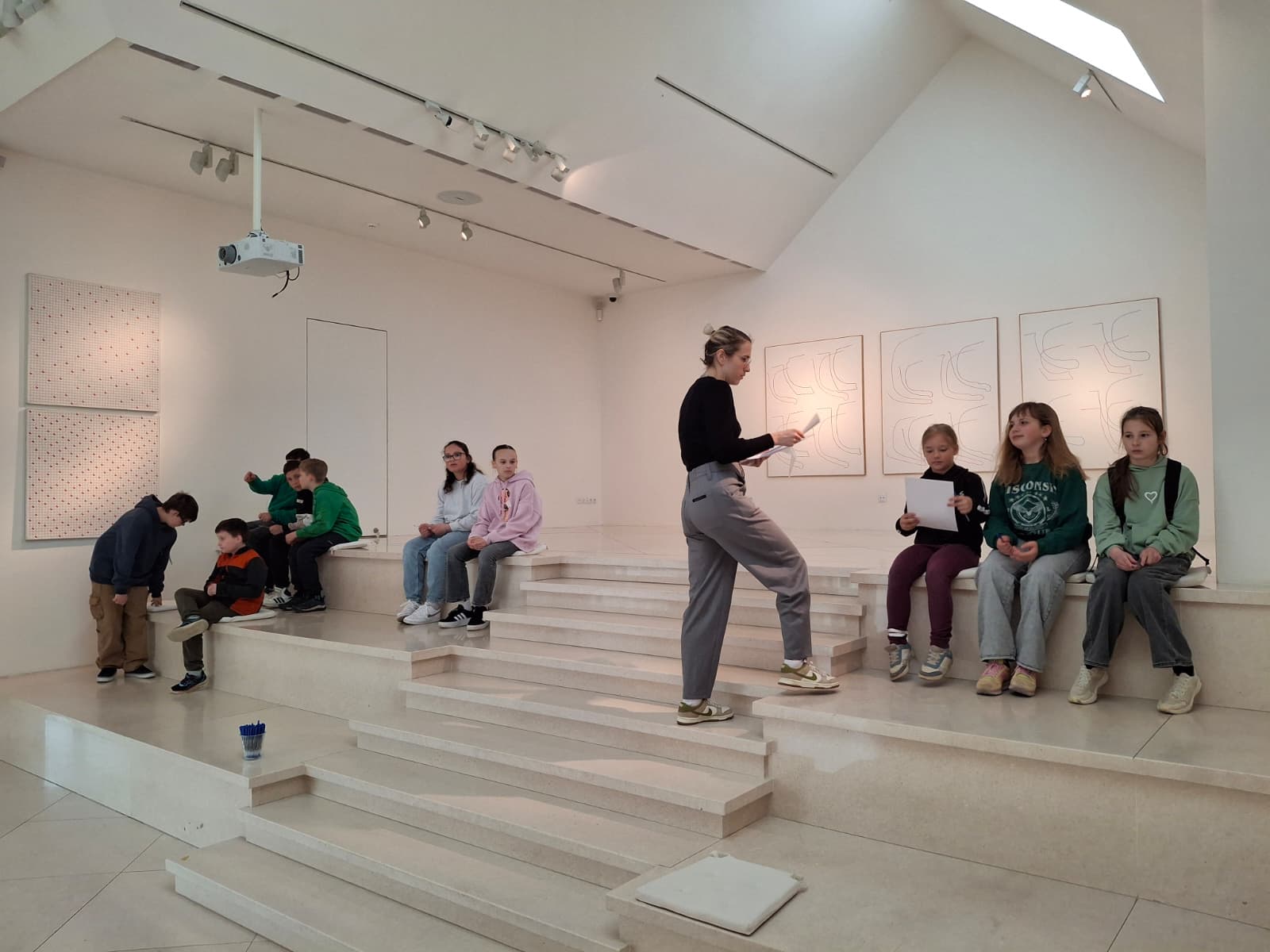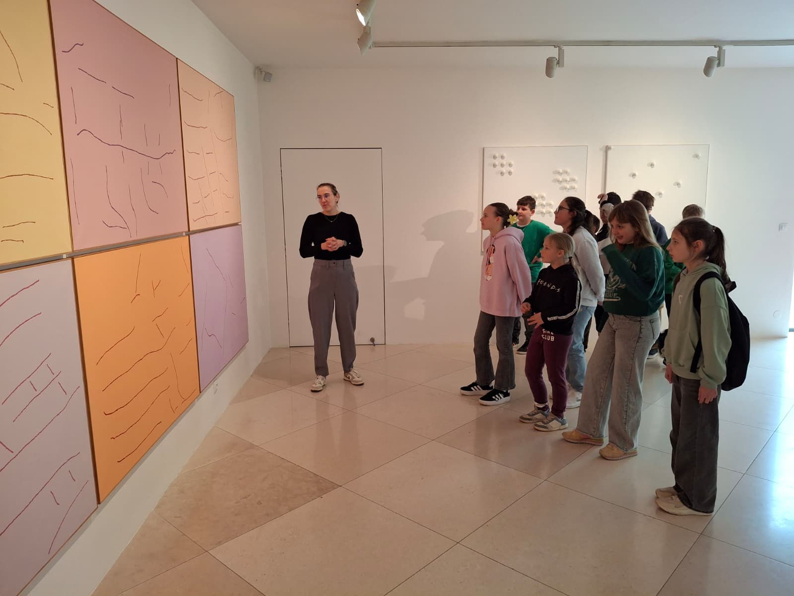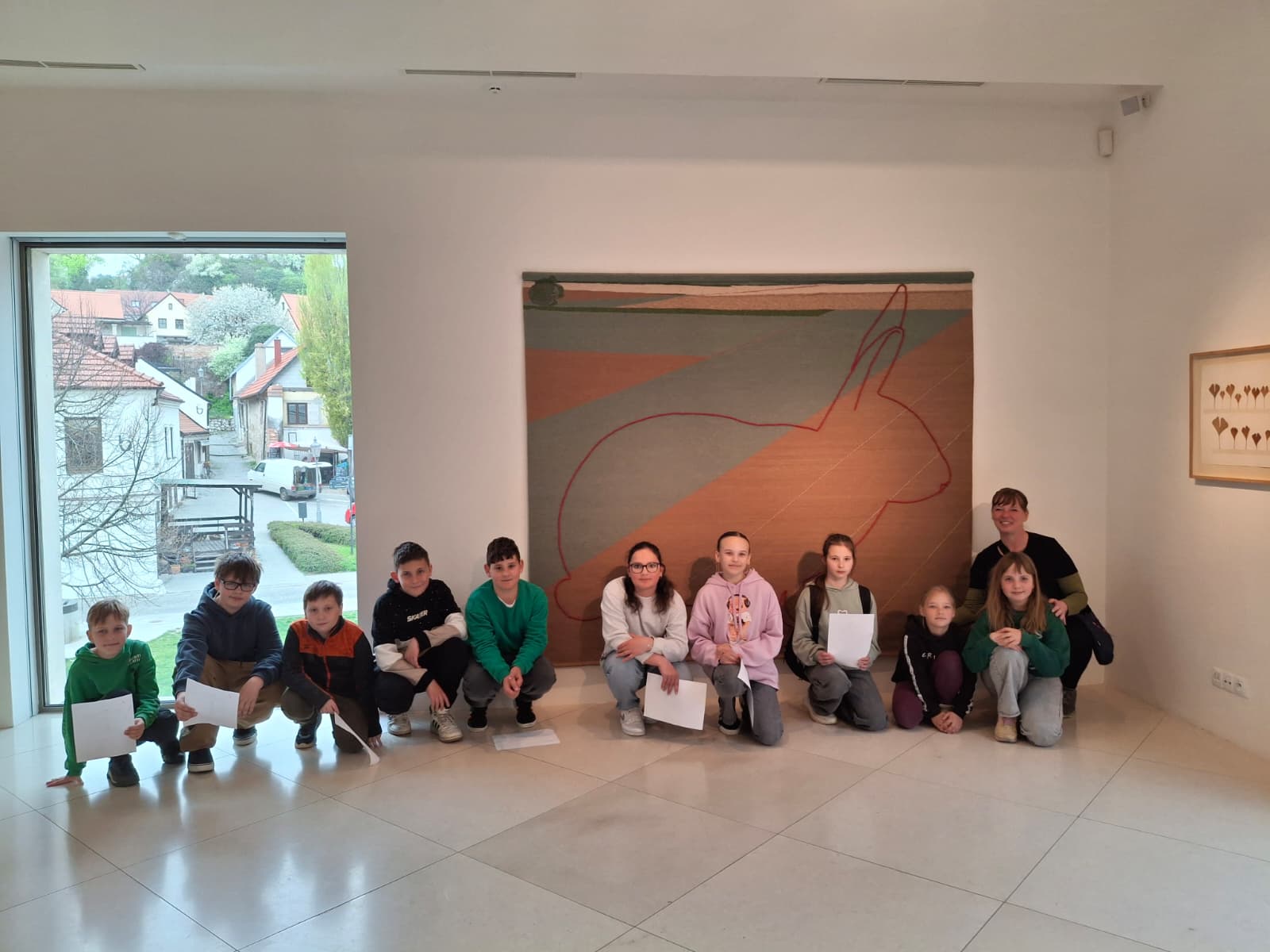 Děti se seznámily s její zajímavou tvorbou, s netradičními výtvarnými projekty a originálním přístupem k umění. Výstava obsahovala zajímavá díla inspirovaná přírodou, zejména tématem zajíce, a každodenním životem i experimentálními technikami. Nejvíce se líbil vlastnoručně tkaný velký obraz zajíce nebo obraz z otisků tlapiček zajíce či záznam z happeningu házení míčů do rybníka. Děti se od paní lektorky dozvěděly zajímavosti ze života umělkyně i důvody, proč takto tvořila. Výklad byl doplněn i o interaktivní prvky, které žáky bavily. Návštěva byla pro děti přínosná a inspirovala je k vlastní tvorbě.