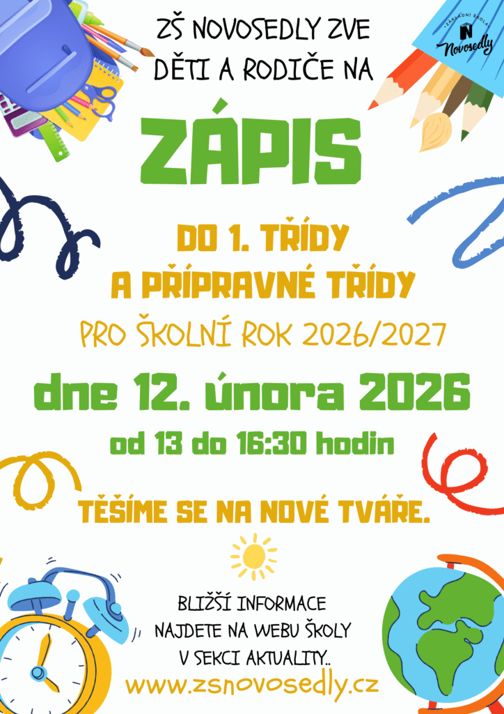 Základní škola Novosedly > Aktuality > ZÁPIS pro školní rok 2026/2027
